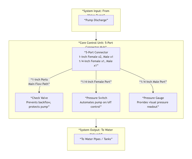 Se o seu sistema já possui uma válvula de retenção separada ou se você não precisa de nenhuma função de válvula de retenção e simplesmente precisa de um "coletor" confiável, o conector de 5 portas é a opção mais econômica e simples. Seu valor reside na simplificação do layout da tubulação e na redução do número de conexões separadas. Cenários específicos incluem:
