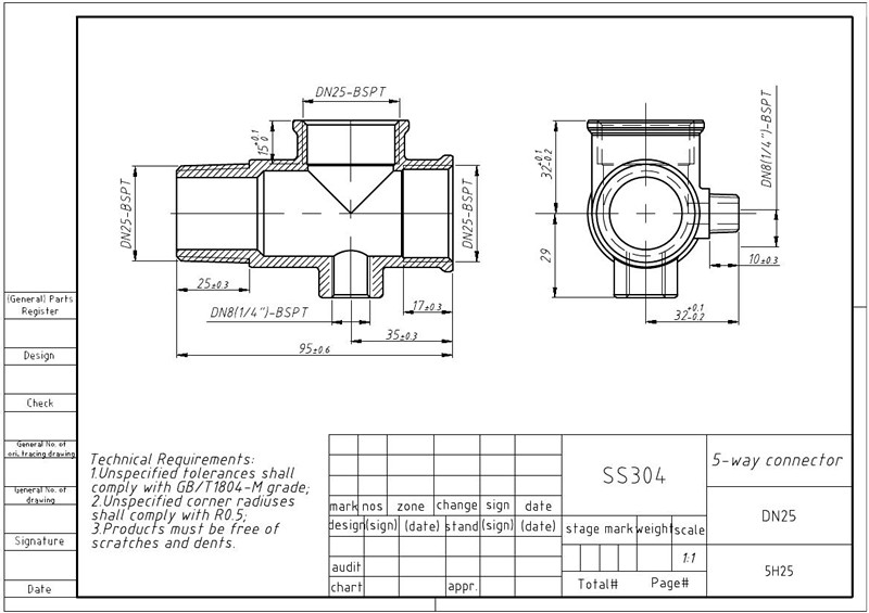O conector de 5 vias do Joepai, devido ao material de aço inoxidável, aumenta significativamente a resistência à corrosão, a resistência e os níveis de higiene através do uso de aço inoxidável, ampliando assim sua gama de aplicações. Torna-se mais durável e mais limpo. Suas principais vantagens incluem: